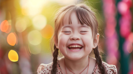 Cute Portrait down syndrome girl laugh life joyful.