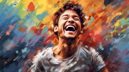 An original piece of art inspired by the style of a famous artist. It depicts a laughing young man with bright colors and bold brush strokes. conveyed a feeling of joy and happiness.