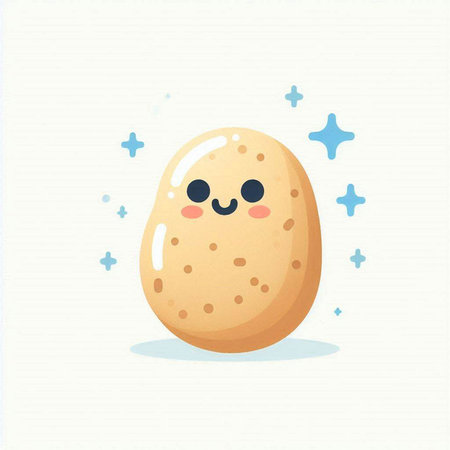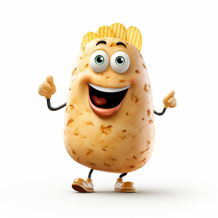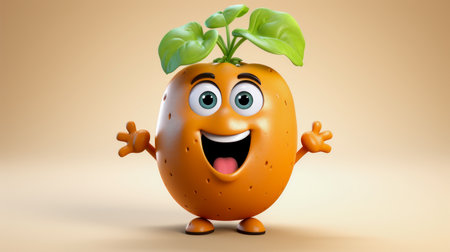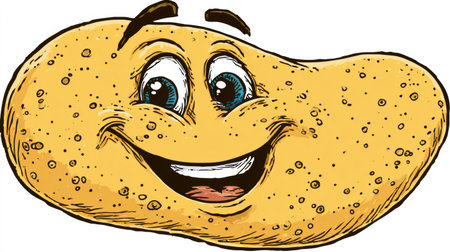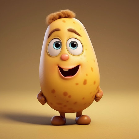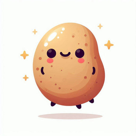 A cheerful cartoon potato character with a friendly expression and large eyes, perfect for adding humor and whimsy to creative projects.