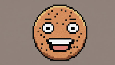 Pixelated cookie with a smiling face on gray background
