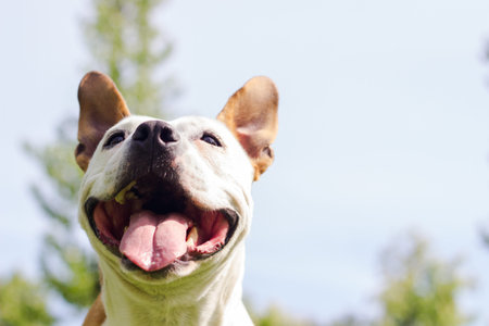 Smiling dog enjoying the beautiful sunny day