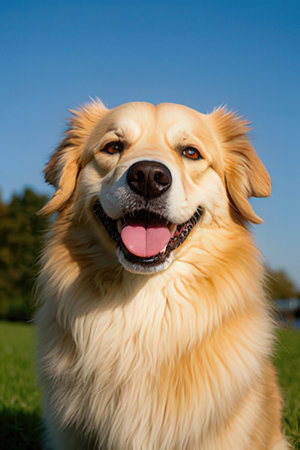 Portrait of a golden retriever dog in the park on a sunny day