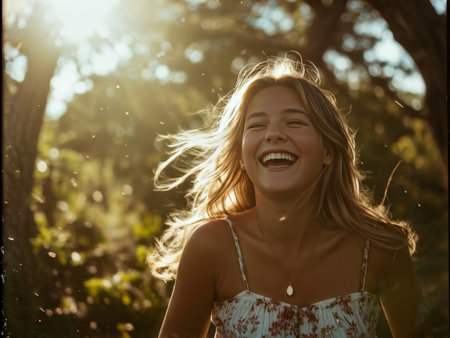 A vibrant capture of joyful moments among friends, showcasing pure laughter and connection in a lively outdoor setting, radiating happiness and energy.