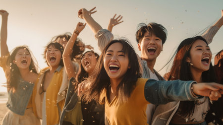 Young people celebrate togetherness, AI generated Image