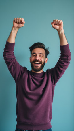 Joyful man celebrating with raised arms