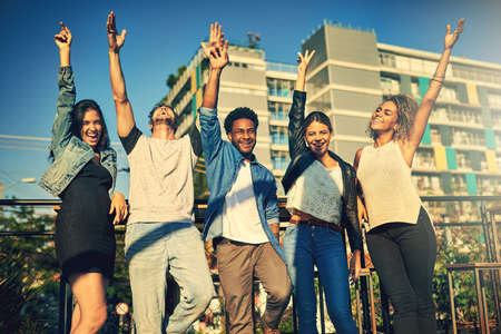 Life is better with friends like these. Cropped shot of a group of young diverse friends spending the day outside on a rooftop.