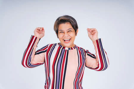 Portrait of cheerful happy old elderly senior woman isolate on white background.