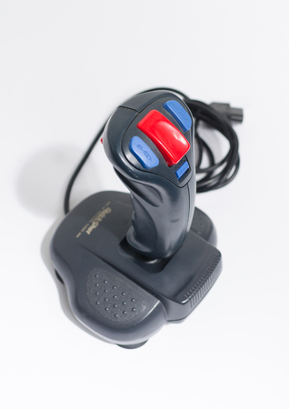 A retro joystick from the mid-1980s. Close up.