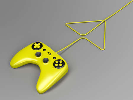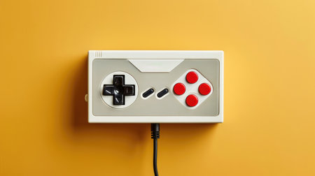 Retro computer gaming controller on a bright yellow background
