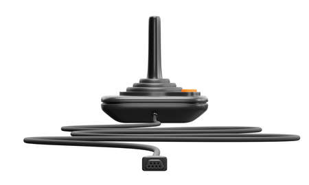Black retro joystick with red button.