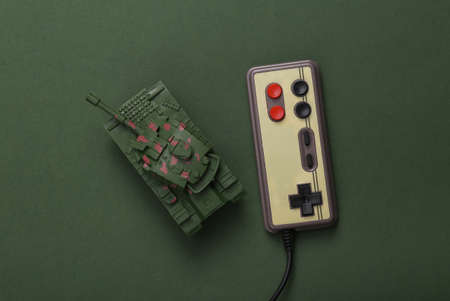 Toy tank with a gamepad on green background