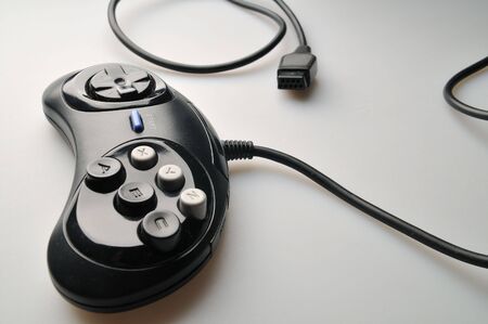 Video game controller with cord, isolated on white background