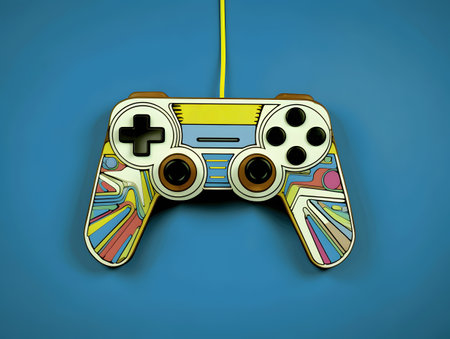 Bright colored gaming controller on gray background