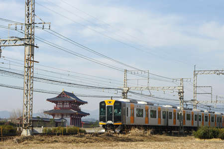 KYOTO, JAPAN - CIRCA MAY 2016: Private company train Keihan line connects between Osaka and Kyoto.