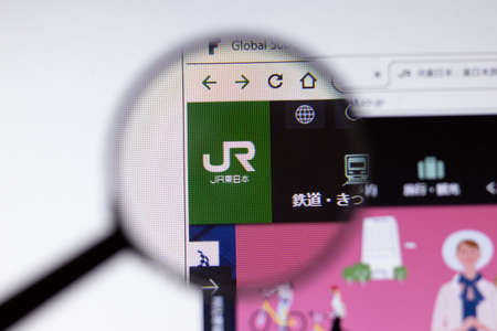 Saint Petersburg, Russia - 29 March 2020: East Japan Railway business company logo visible on screen. Corporation website page close-up, Illustrative Editorial.