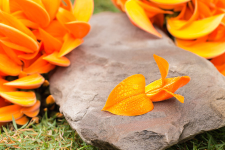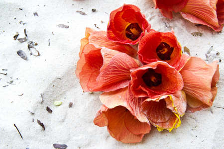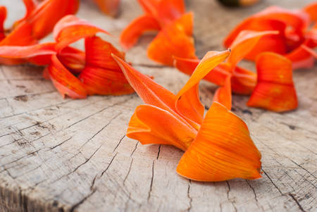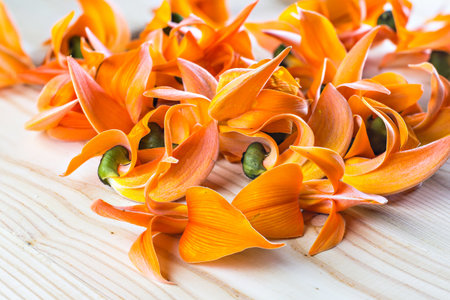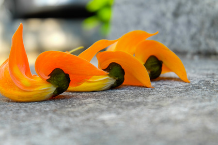 orange flower native to South Asia, Flowers fall from the tree.