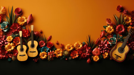 Composition for Cinco de Mayo concept with guitar, top view