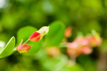 plum blossoming or desert tree called kair, capparis plants orange flowers on selective focus, beautiful view of karira plants flowers and fruits. Capparis decidua (karira or kerda) plant's flower