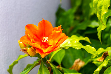 Orange large tropical flower bloom in Patong Beach Kathu District Phuket Island Province Southern Thailand in Southeast Asia.