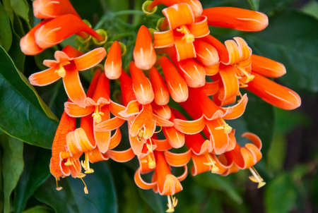 Venous Pyrostegy. Orange Trumpet blooming in garden.