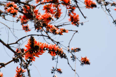 Butea monosperma flower on blue sky background.