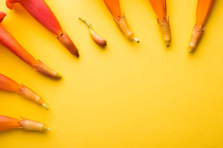 red campsite buds on a yellow background. Beautiful flower arrangement.