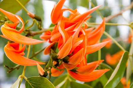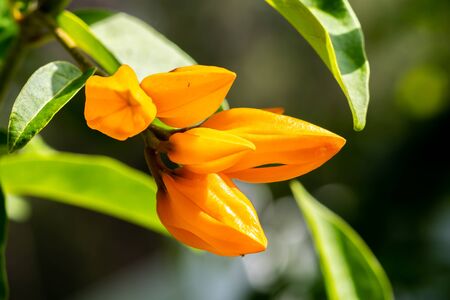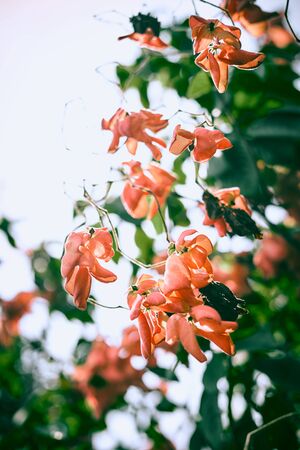 NEW GUINEA GREEPER, RED JADE VINE. Beautiful Orange Flower in the Park.