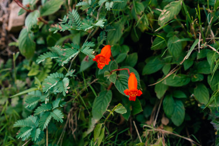 Orange gold finger plant Juanulloa parasitica vine plant in Mexico