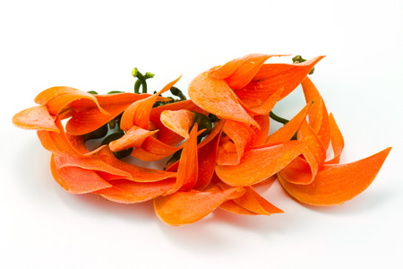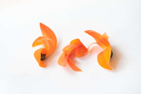Bastard Teak or Flame of the Forest flower with flare light, soft focus on white background.