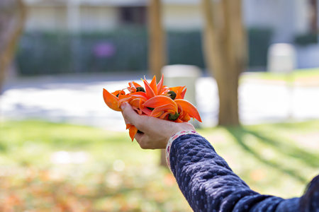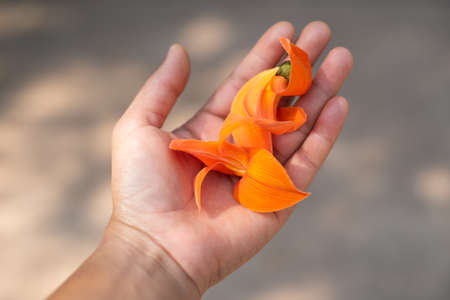 Bastard Teak or Flame of the Forest's flowers on woman's hand