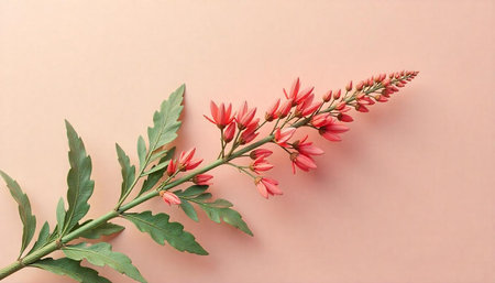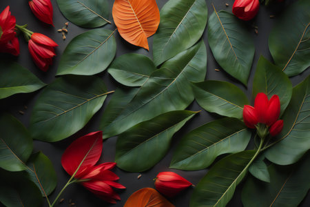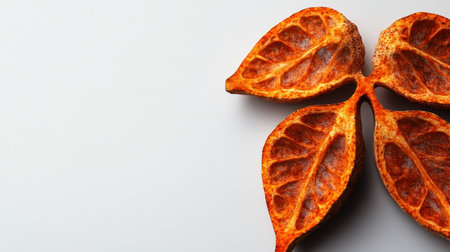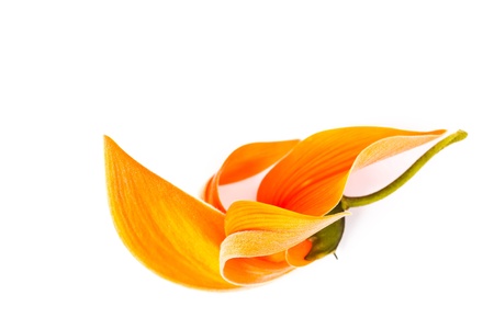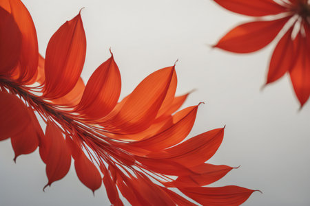 Red petals of a tropical plant on a white background with copy space. generative ai