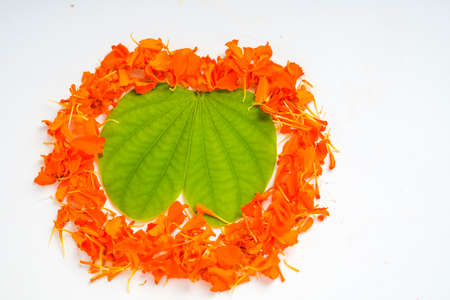 Happy Dussehra greeting card , green apta leaf and rice, Indian festival dussehra