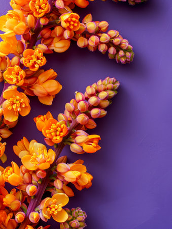 Vibrant Orange and Yellow Flowers on Purple Background Stunning Floral Arrangement with Colorful Blooms in Vertical Composition AI Generative