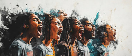 A woman shouting at the protest action. A moment of gransgression. . AI generative image.