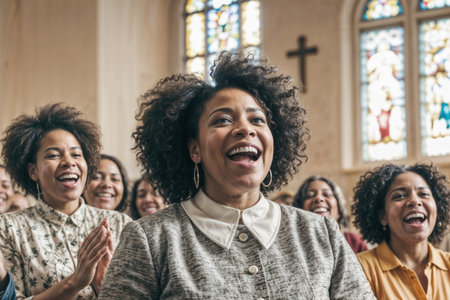 African American Christian Gospel singers in church clapping, praising lord Jesus Christ with emotions and happiness