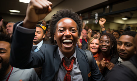 A group of people of African descent are cheering.