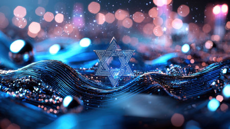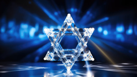 Shining star of David on a dark background. The concept of symbols of the people. Generative AI