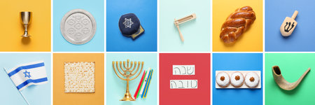 David Star and other traditional Jewish symbols on the background. Judaism concept