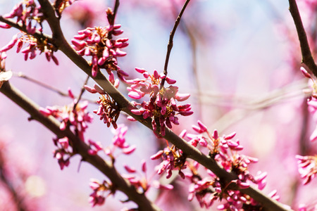 Close up shot of the eastern redbud blossom at Las Vegas, Nevada