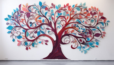 Artistic colorful abstract tree on white wall background. Modern art concept