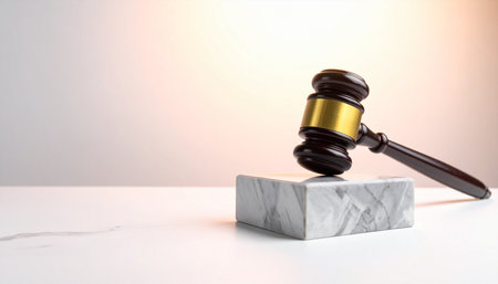 A judge's gavel rests on a solid marble block, symbolizing the weight and finality of justice.