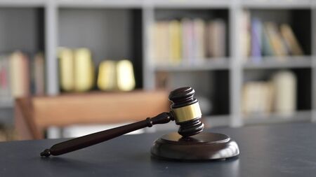 Gavel on wooden table, court room concept