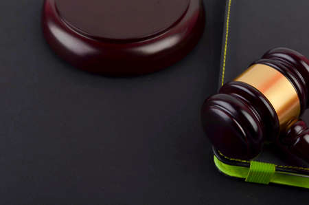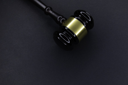 Judge's gavel on a black table. Concept of law