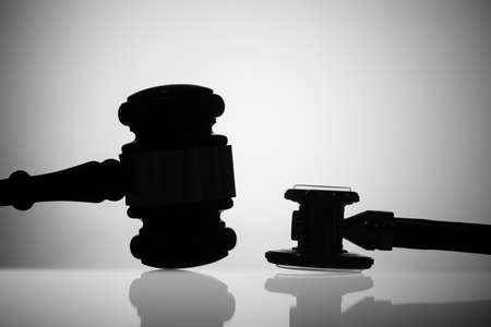 Silhouette Of Gavel And Stethoscope On Reflective Background