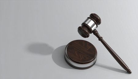 A wooden gavel placed on a block, representing law and justice. The minimalistic setting enhances the themes of authority and professionalism in the legal field.