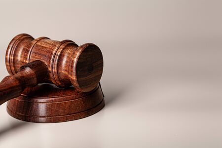 Law and justice concept. Gavel - law symbol on gray background.