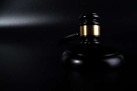 high contrast image of Judge gavel on a black wooden background