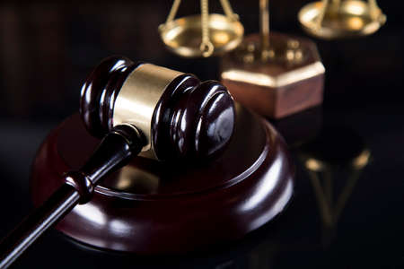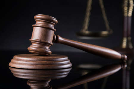 Law and Justice, Legality concept, Judge Gavel on a black wooden