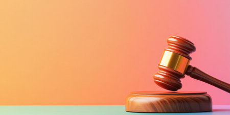 Wooden Gavel on Vibrant Gradient Background Highlighting Justice and Law Themes.