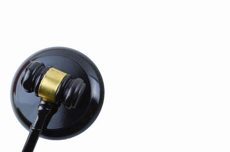Close up black gavel isolated on White Background. justice concept